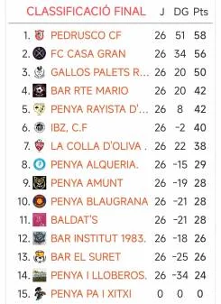 PENYA PA I XITXI - BAR RTE MARIO - LA COLLA D´OLIVA - PENYA AMUNT - BALDAT´S - IBZ CF -